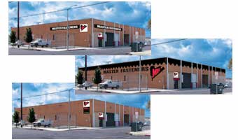 Actual building photographed and overlayed with design variations using existing logos.