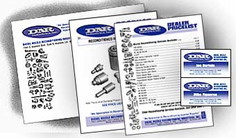Mail package including envelope, product sheets (one of 30 shown), pricelist and business cards.