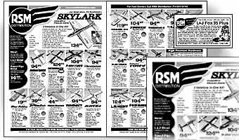 Two page spread and spot ad for hobby supplier, black and halftones.
